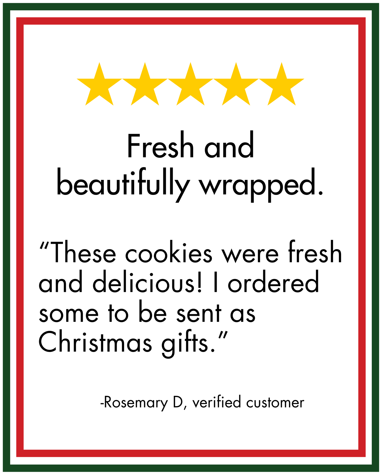 Our goal is to ship all gift orders received by 12:00PM the following business day. That being said, Christmas is our busiest season so it may take up to 3 business days to fulfill to ensure we deliver the freshest cookies.